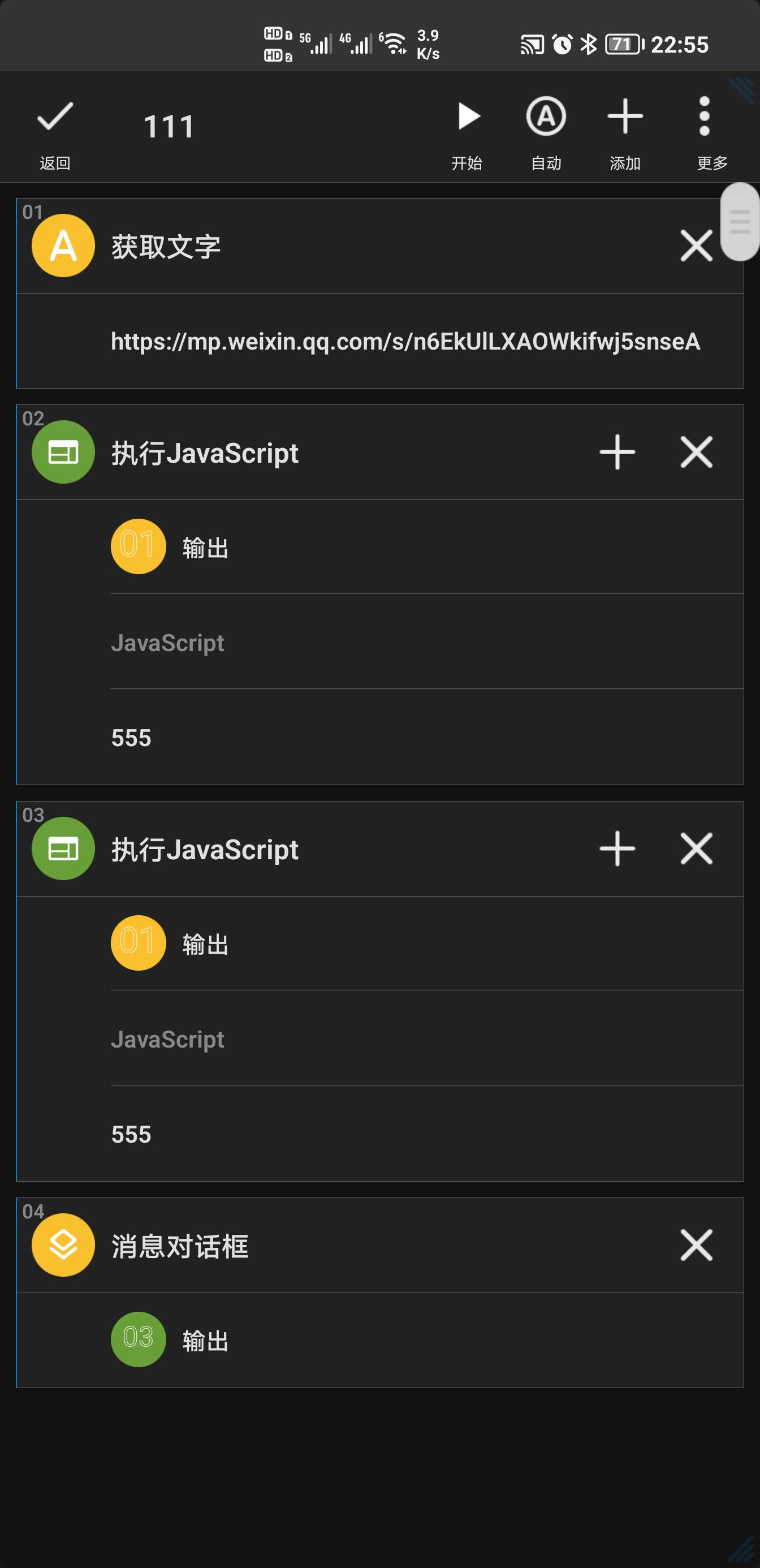 为了避免返回的是url,你要添加“间隔时间:1000ms”,然后再添加"获取文字"。我个人猜测是因为读取网址需要时间。