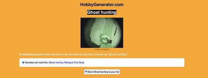- HobbyGenerator - 如果你想找到一个爱好,但是想不出有什么爱好。这个网站会随机展示一些爱好,有很多有趣的的想法。探索一下说不定可以发现新大陆。