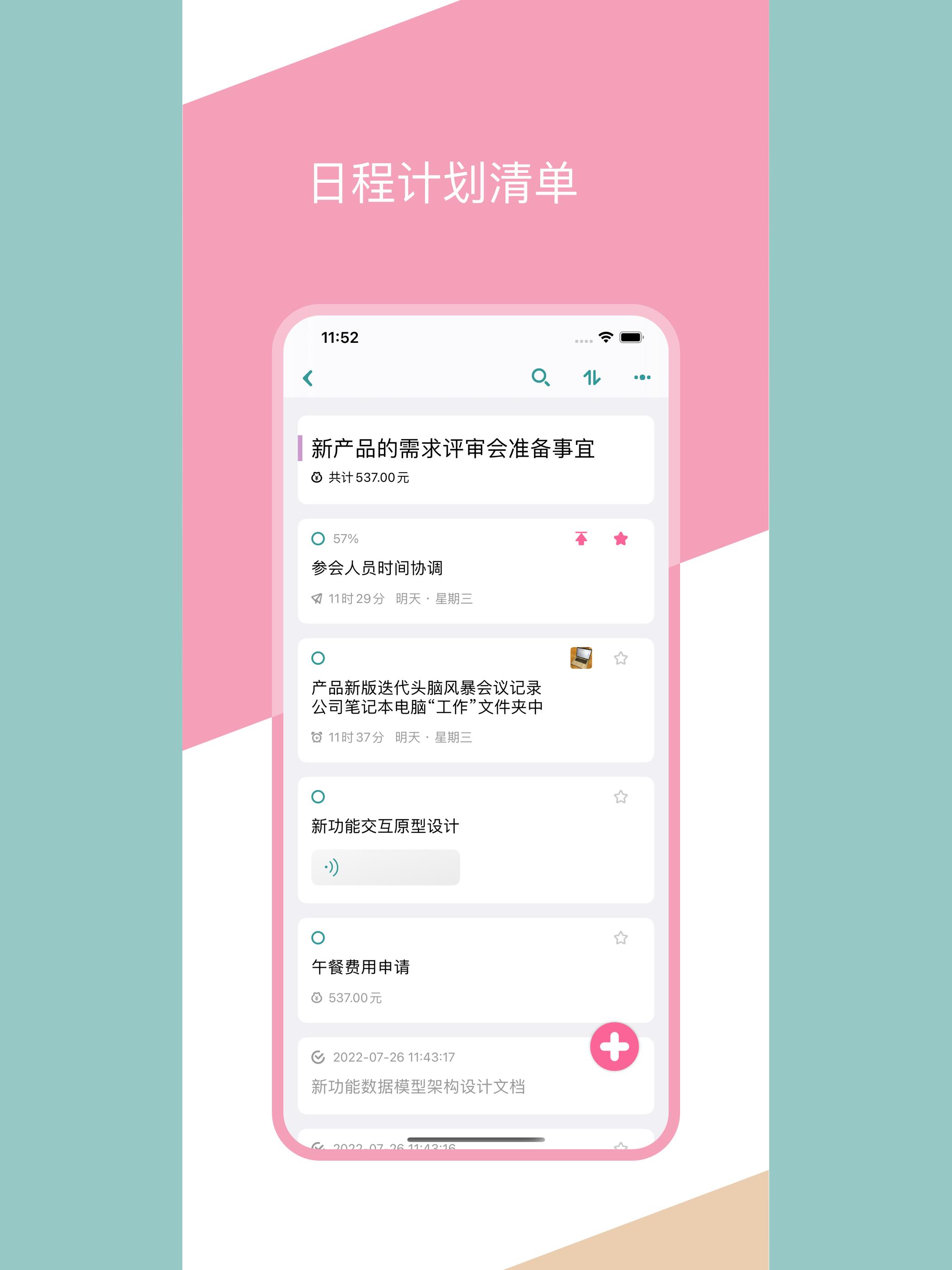- 清单支持AI智能录音和文本朗读;文件夹无限级分类;待办事项进度和智能搜索。