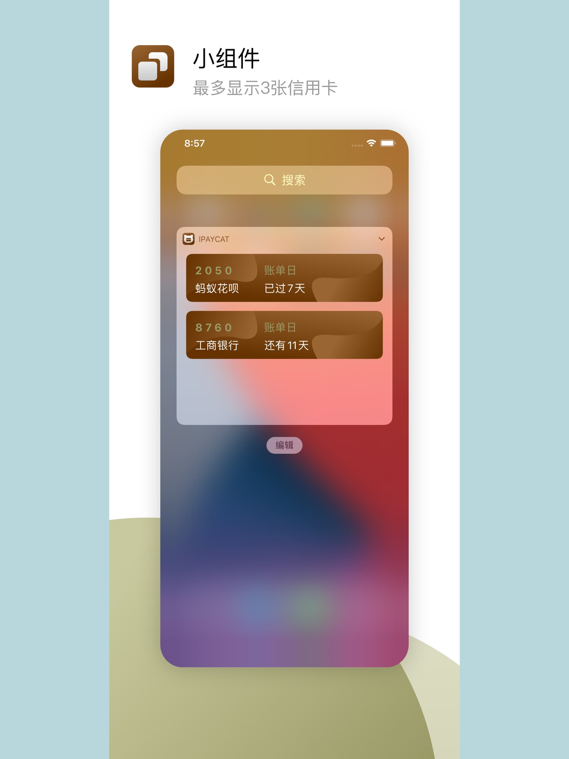 - Widget小组件:不用打开App即可便捷查看信用卡信息(最多显示3张信用卡)。锁屏或桌面的状态下,右滑进入。