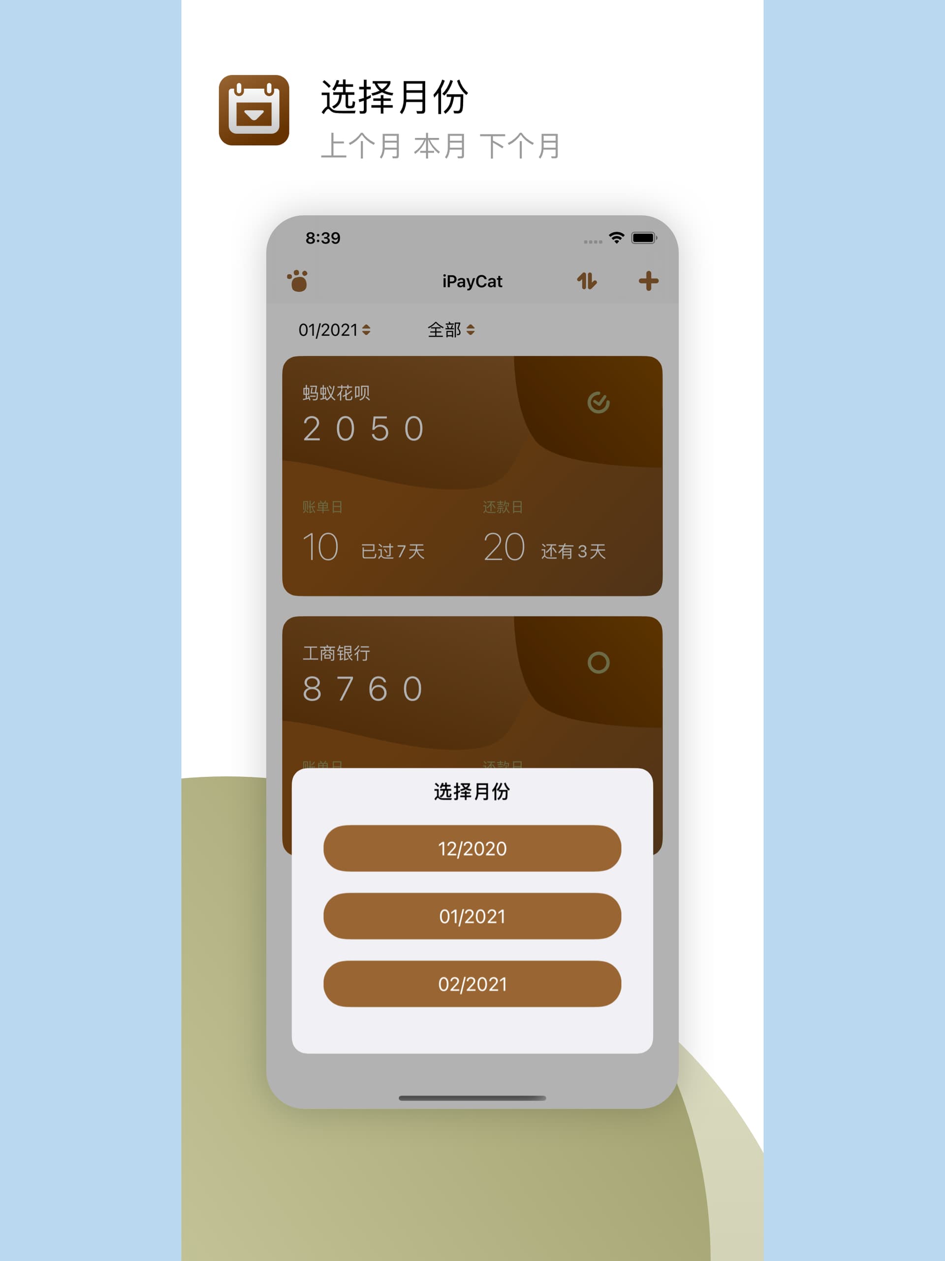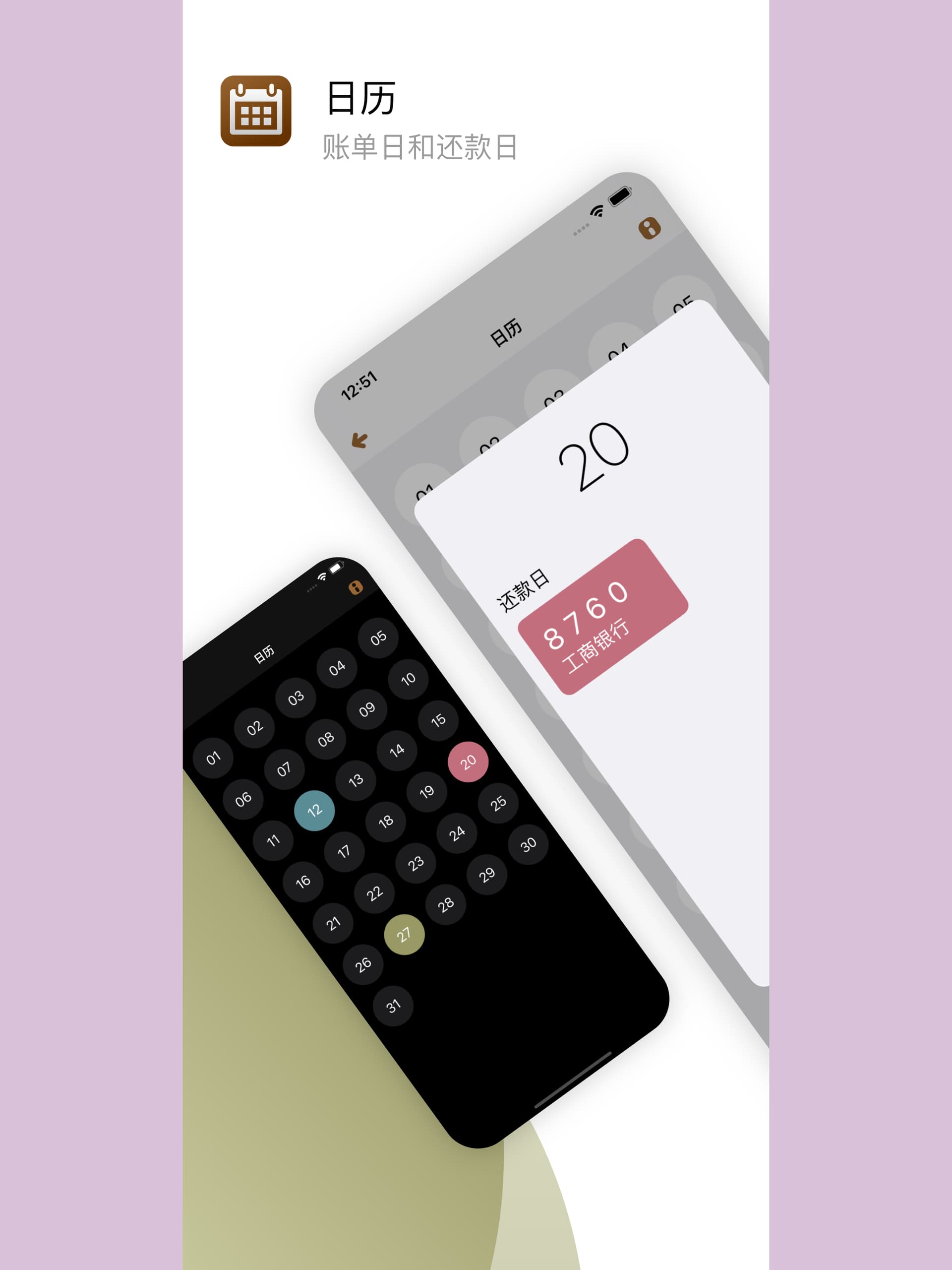 - 日历:账单日和还款日一目了然。