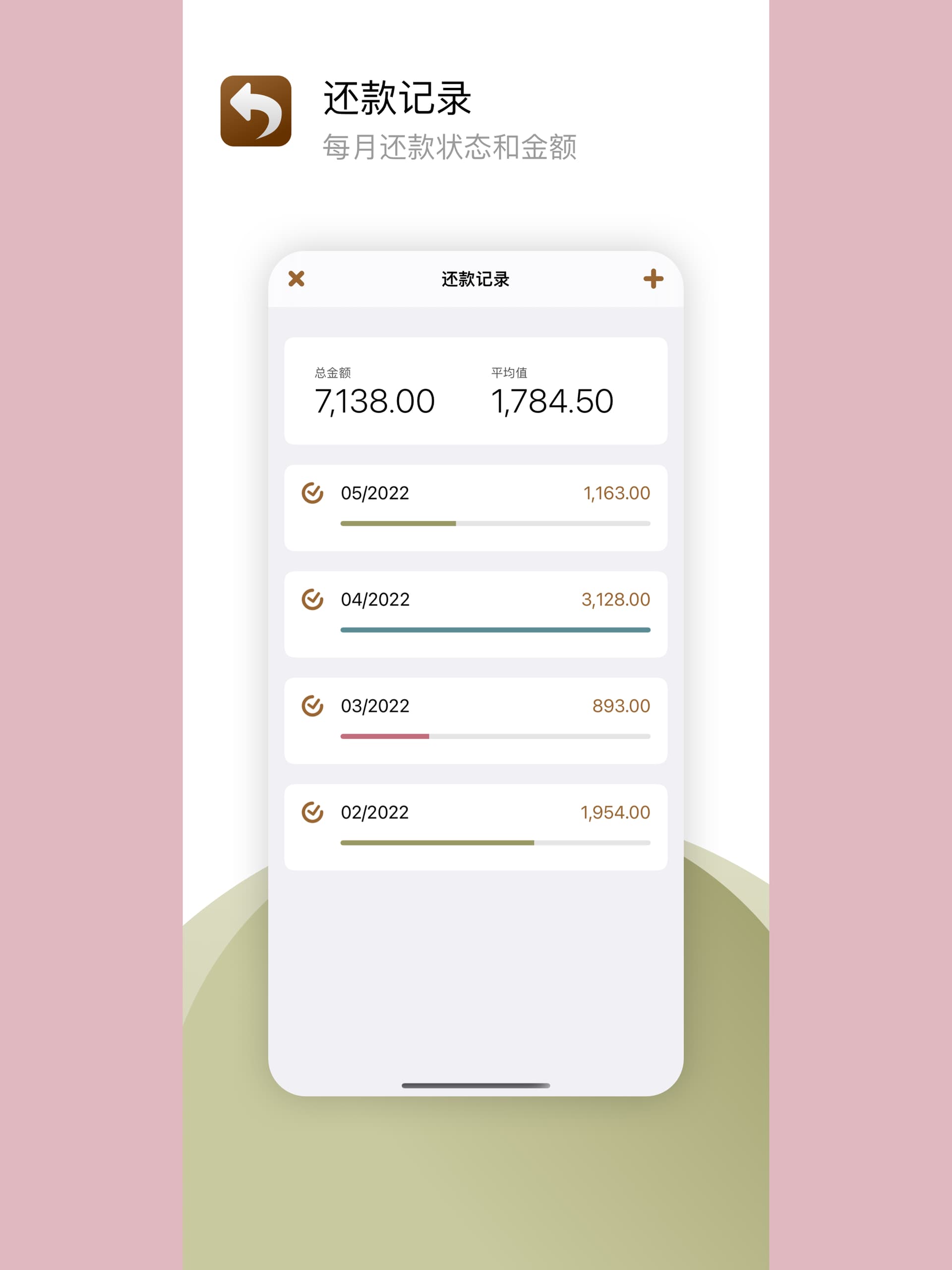 - 还款记录:每月还款状态和金额记录,还款统计。