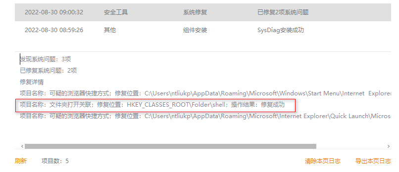 今天电脑启动后是黑光屏,屏幕中央只有一个光标,其它啥也看不见,ctrl+alt+del 也看不见任务管理器。按住电源键几秒重启了两次才好。寻思是不是系统有问题了导致开机有问题,很久以前装过一个火绒,就打开看了下 里面有个系统修复,就点了下,扫出3个问题,其中一个 写的folder 什么的,这不就是文件夹吗? 果然点完修复之后,我再去浏览器下载 就好了。可惜当时没截图 扫描出来的问题。