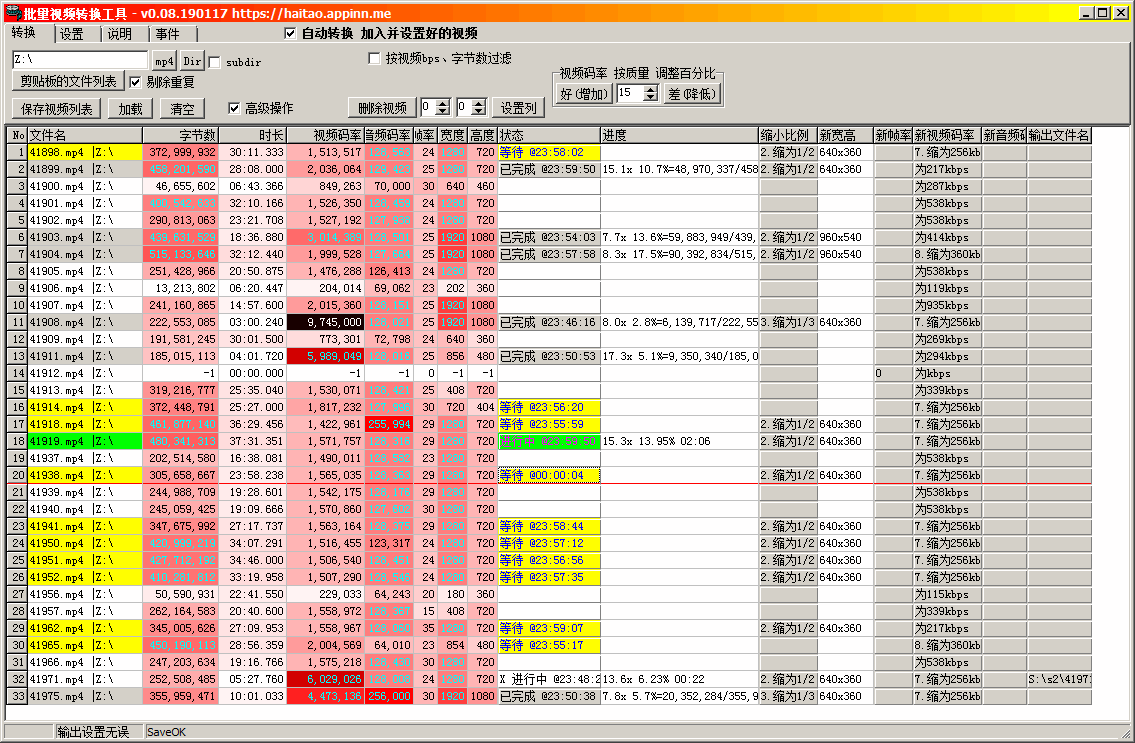 所以需要一个预估函数:转码顺序=综合(节省空间,转码费时(旧新视频长宽、码率、帧率,旧新音频码率,时长)) //发现帧率60的视频特别慢