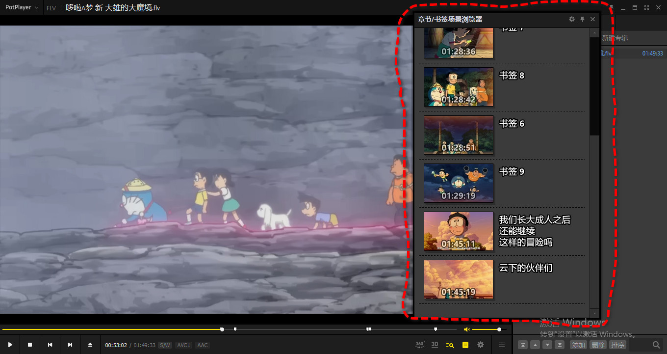 我记得以前版本PotPlayer书签窗口跟播放列表并列排在一起的,不是单独的窗口。难道我记错了?