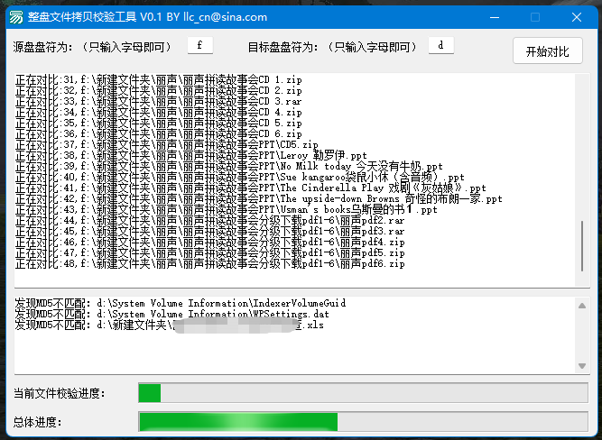 能一次性比对一个盘符那种,如果一个文件一个文件比对的话怕是会累死。。。。