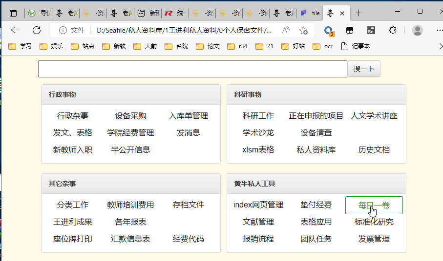 我每天工作都要接触大量的网站(Preformatted text网站、同事文档、文档资料、搜索内容等),我之前都是通过收藏夹或者直接百度进行跳转,但是,遇到了一些痛点。