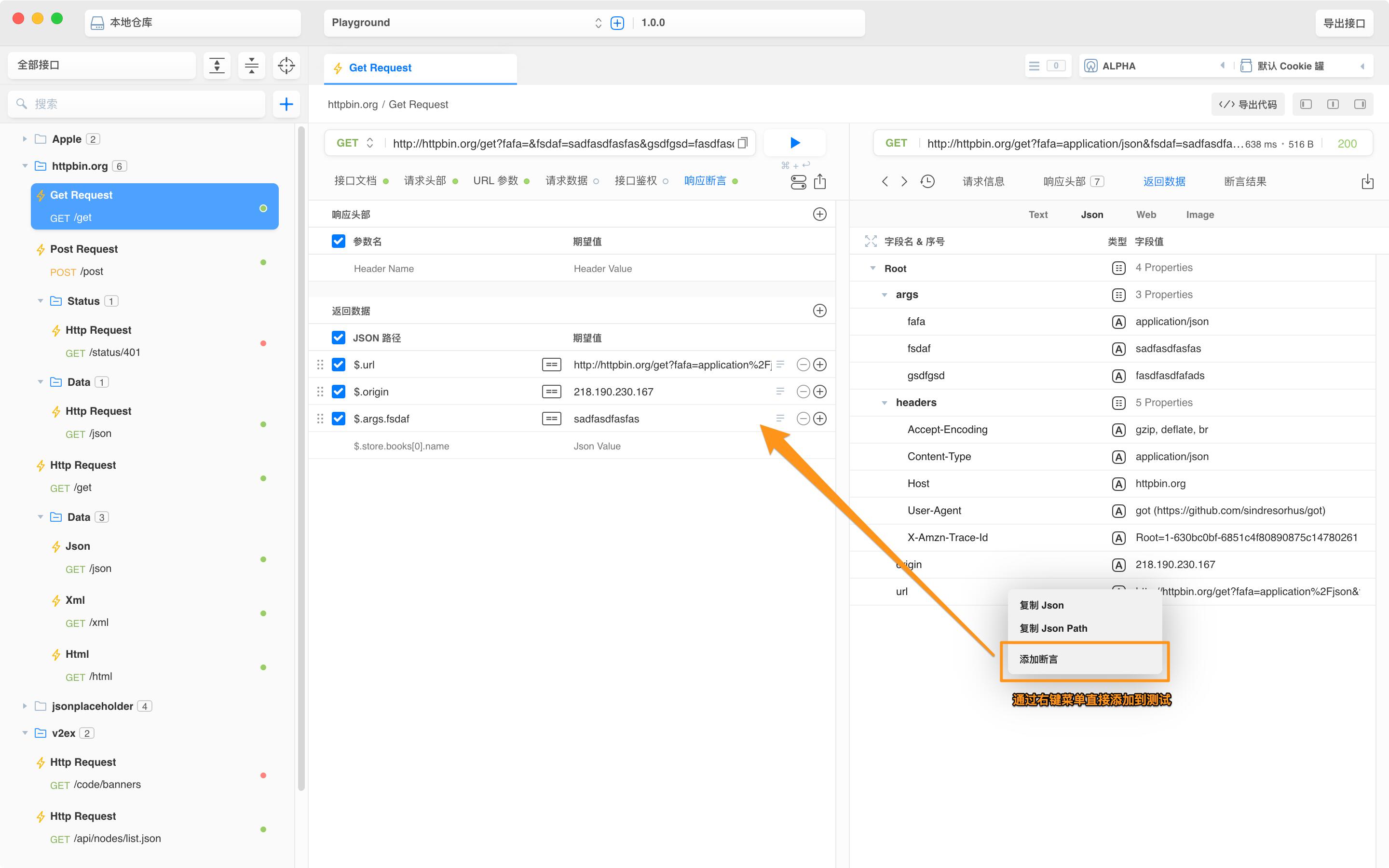 - 断言功能全面更新,支持一键添加断言,支持比对返回结果