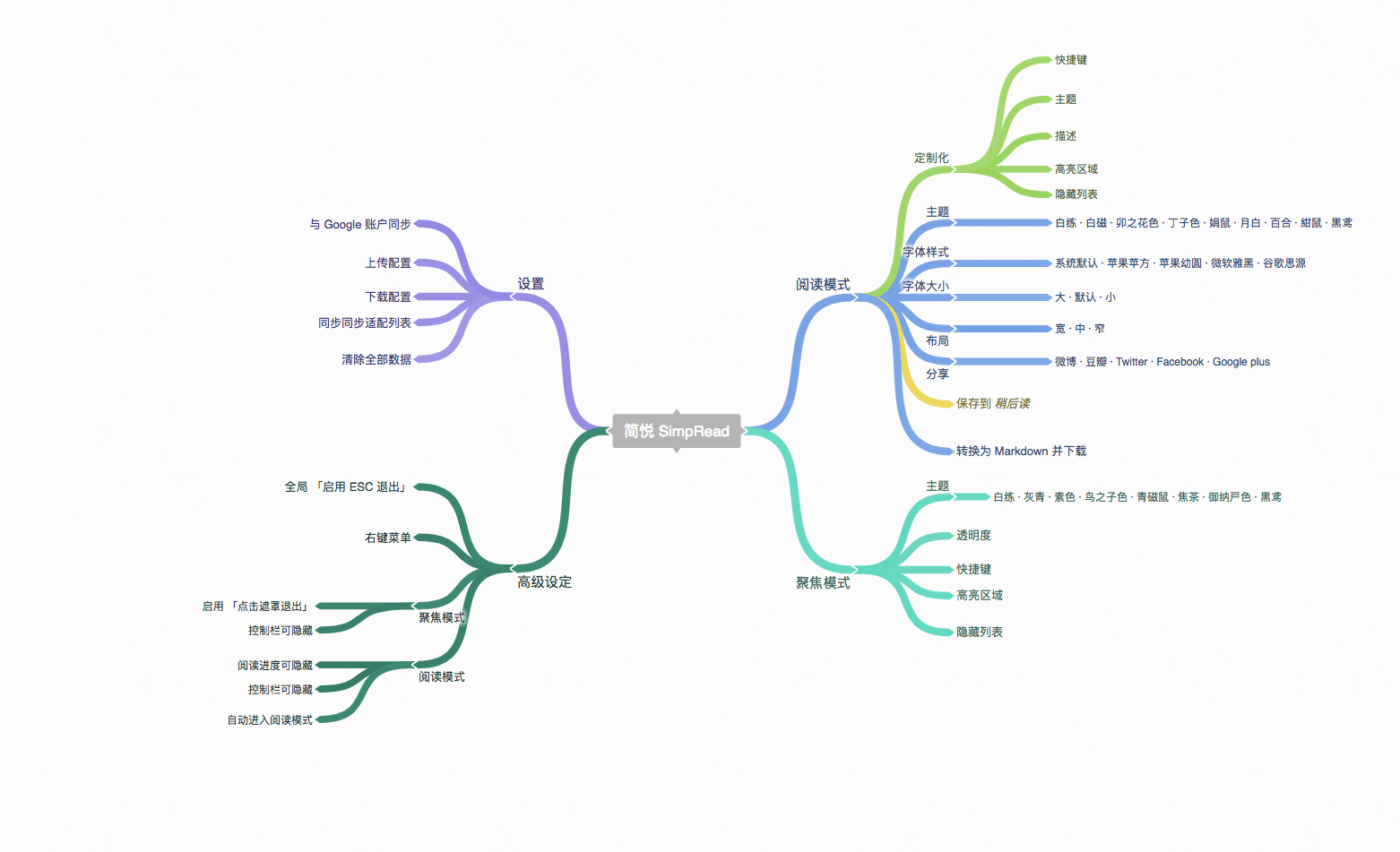 导出到 Pocket · Linnk · Dropbox · Onenote · Google Drive · 印象笔记 / Evernote 以及 发送到 Kindle;自定义样式;论坛类页面;分页 等,详细可以看 更新日志