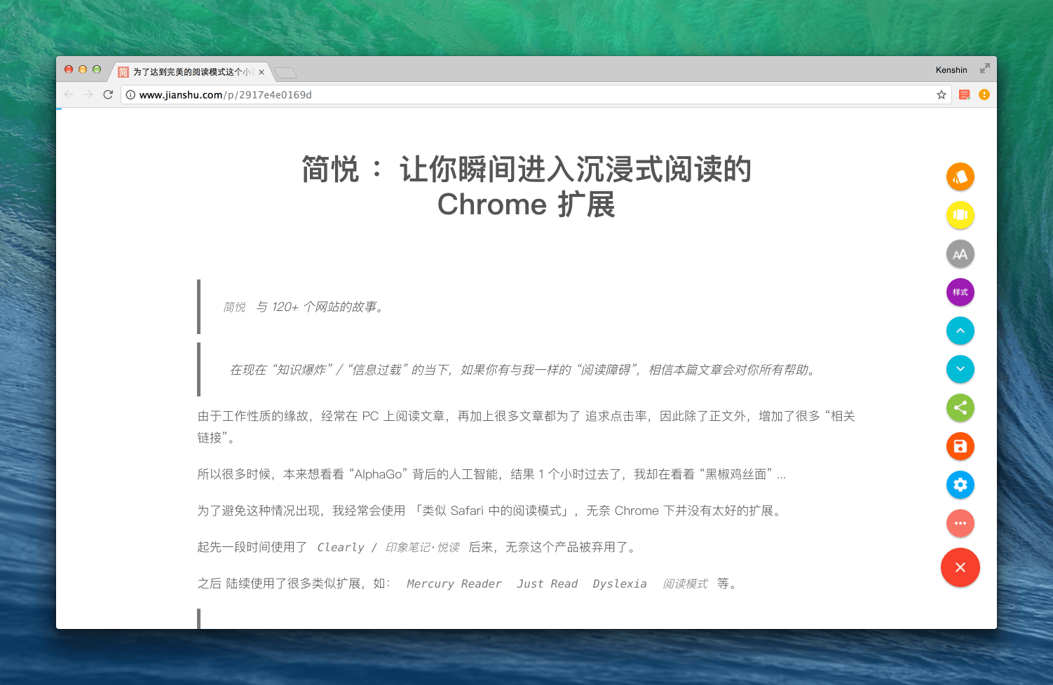 页面虽然变漂亮了,但并没有改善【沉浸式阅读】的问题,而简悦的做法: