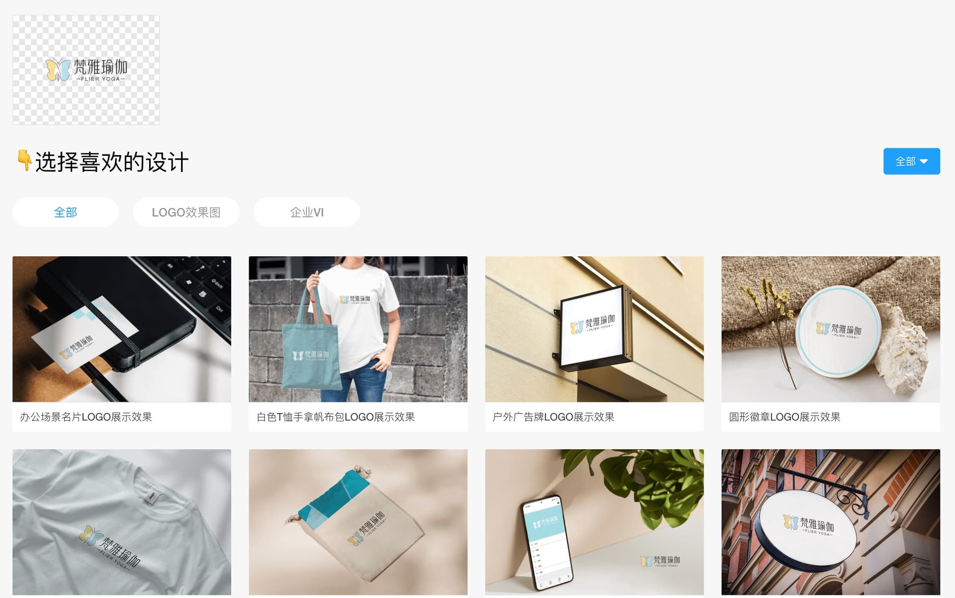 接下来,你会看到刚刚上传的logo,自动应用在了各种场景上,可以下拉实时预览Logo效果图。