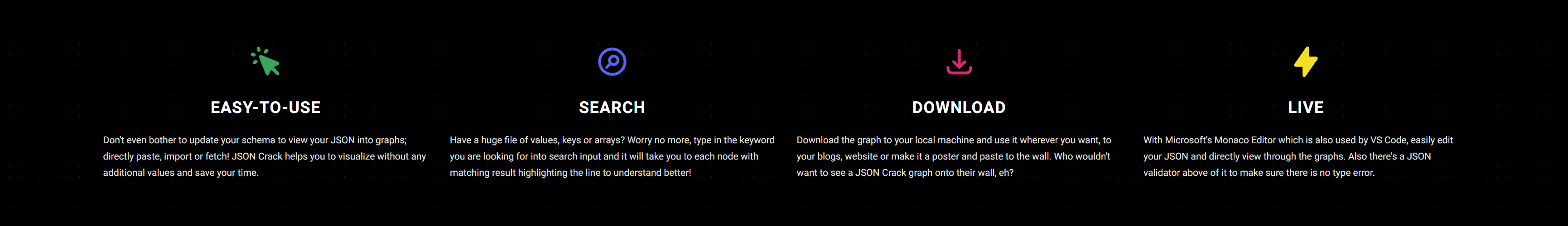 「JSON Crack」是一个开源的在线JSON数据可视化编辑器,可以把任意JSON数据转化为树状图。