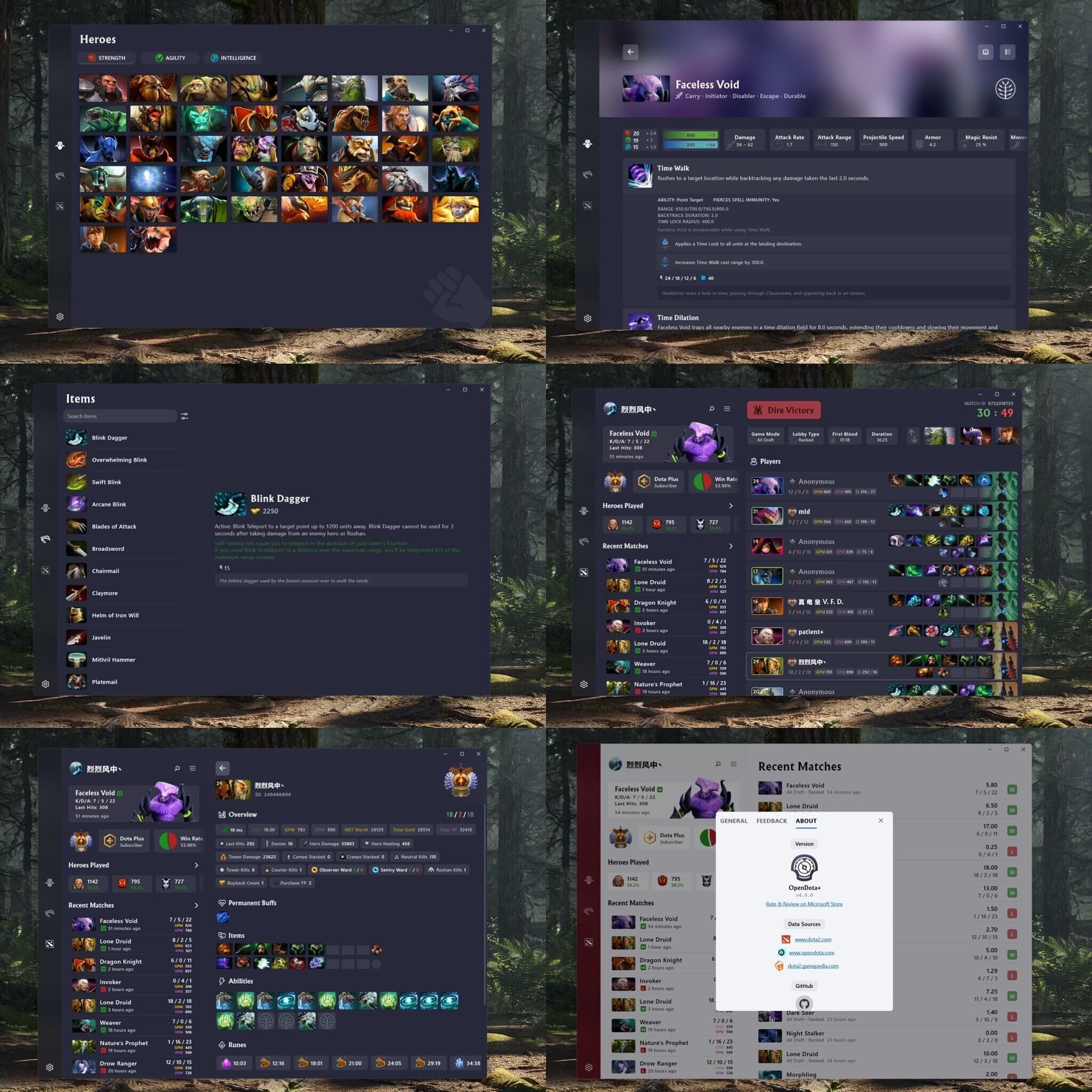 这是一个 Dota 2 游戏玩家的助手应用,提供了英雄和装备的最新信息,更可以查看来自 OpenDota 的丰富玩家数据和比赛统计,让你能够回顾每一场游戏的综合表现。