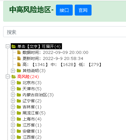 比官方好用的 中高风险地区查询,打开网页就能用,可以查询,带API
