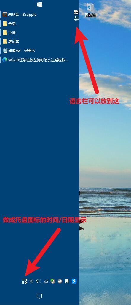 Win10任务栏放左侧时怎么让系统按钮横向排布以便更紧凑?
