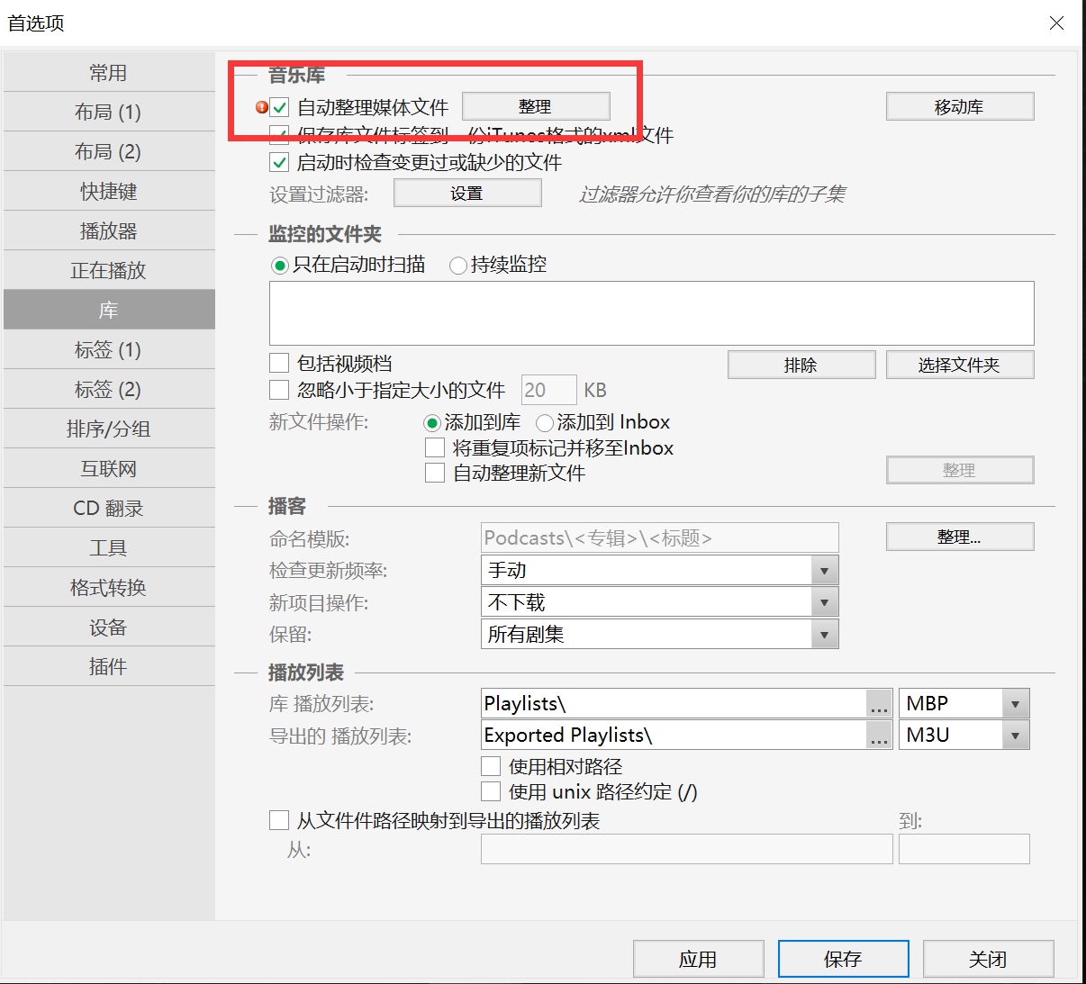 这里是我最后采用的库文件整理规则 填到上图红框里可以直接用(我听得洋文歌偏多,所有所有非英文首字母的都汇总到music下面的0文件夹中了)