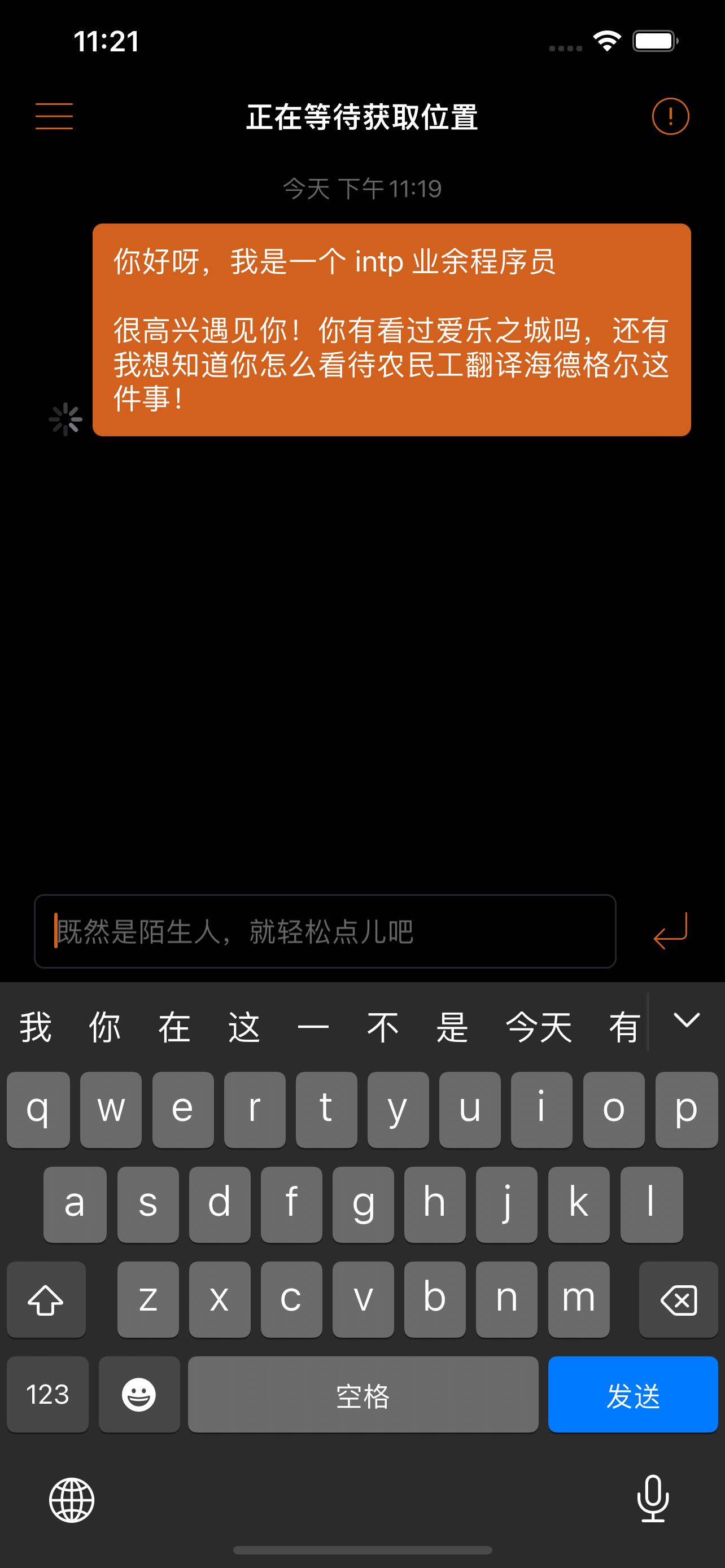 成功找到合适的人以后,你们会开始聊天,同时自动发送一段开场白