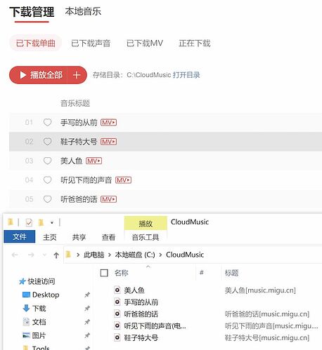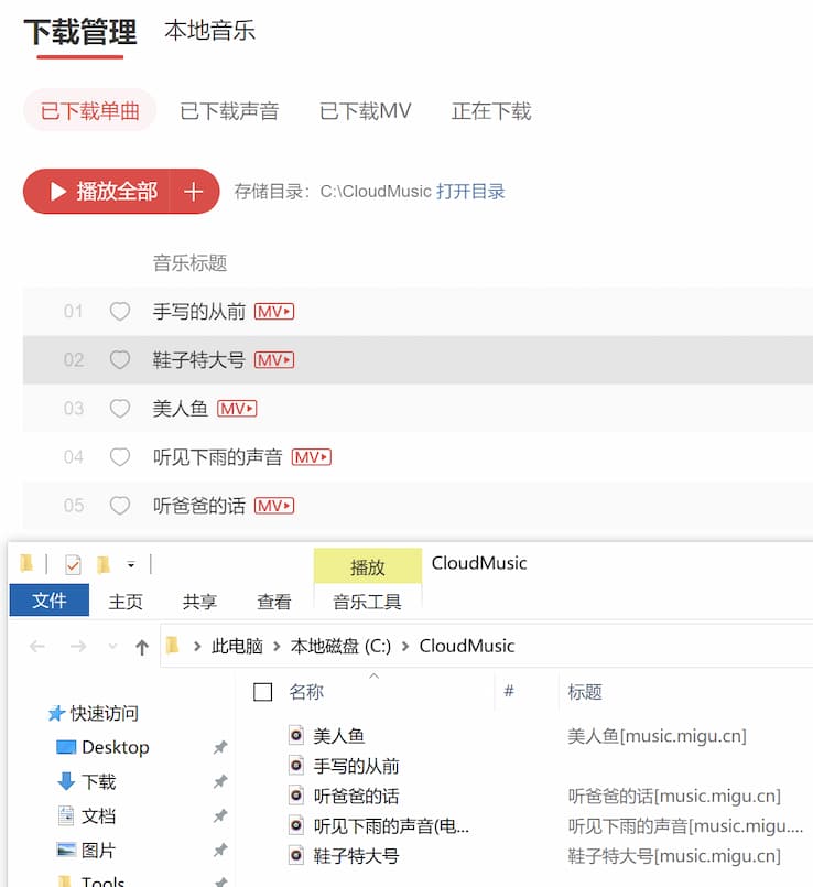 当通过 Melody 将歌曲上传至云盘之后,就可以方便的批量下载了: