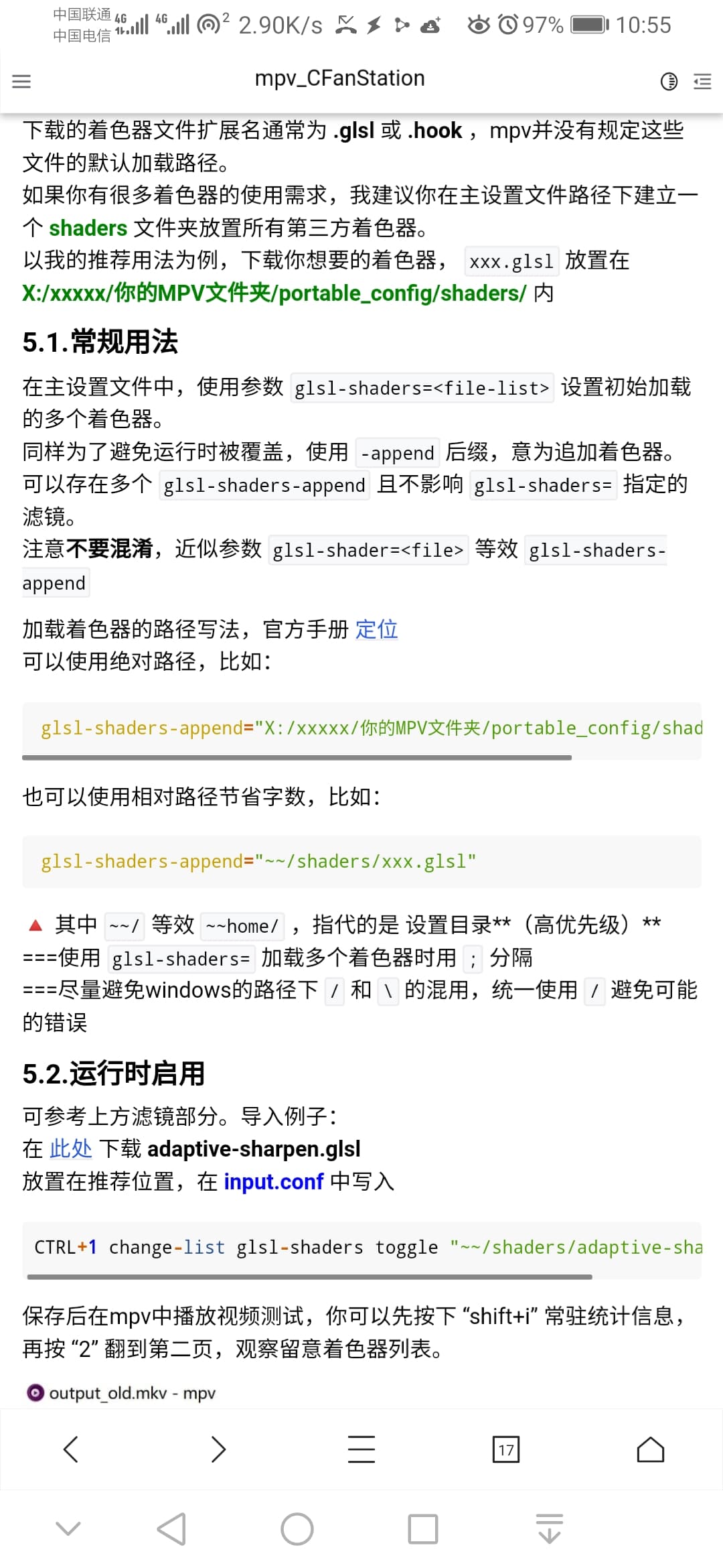 我是刚好在配置那里看到一个mpv.conf的路径写法,然后没按照图片里的写法。。。