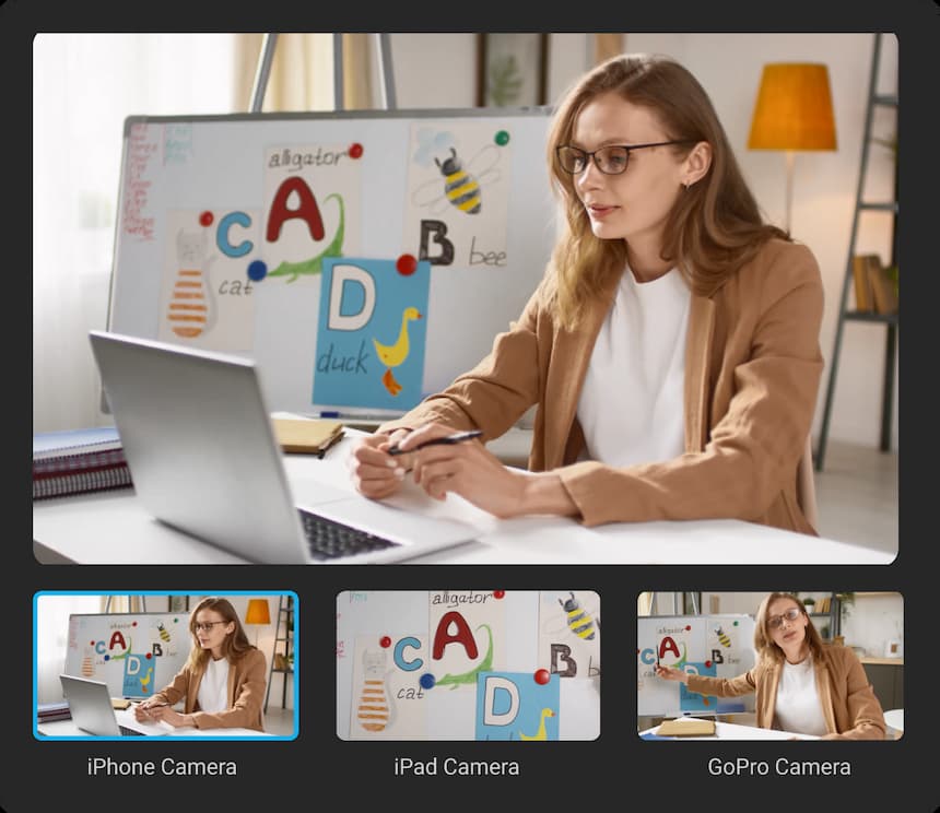 还支持多机位切换工作,前后摄像头可同时启用,多镜头多视角展示。