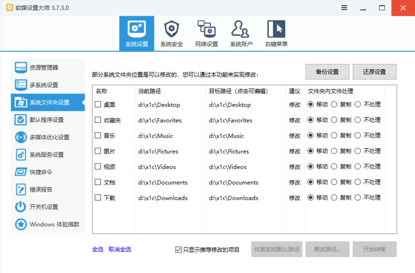 求助有没有类似的软件,可以一键把WIN10系统盘允许移动到别的盘的文件夹设置移走?