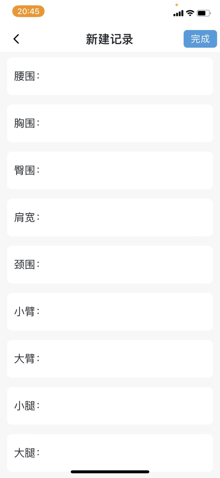 记录一些身体的数据,例如:体重、身高、胸围、腰围、臀围、手肘、大腿、小腿…
