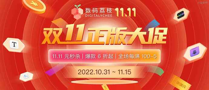 由「数码荔枝」带来的 2022 双11 正版软件年度大促将从今天开始,一直持续至 11 月 15 日,带来 60+ 款热门软件 6 折起购,以及秒杀、减免活动。一年一度,入正好时机。@Appinn