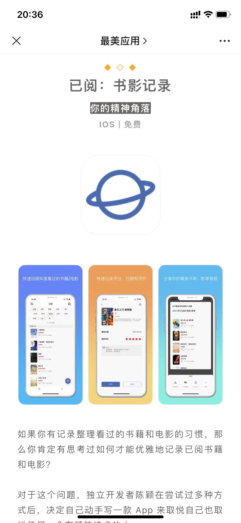 尽管「已阅」本身并不完美,但这是我尽最大的认知和审美水平完成的一款诚意满满的作品,无广告,极简风格,希望「已阅」也能成为你的精神角落