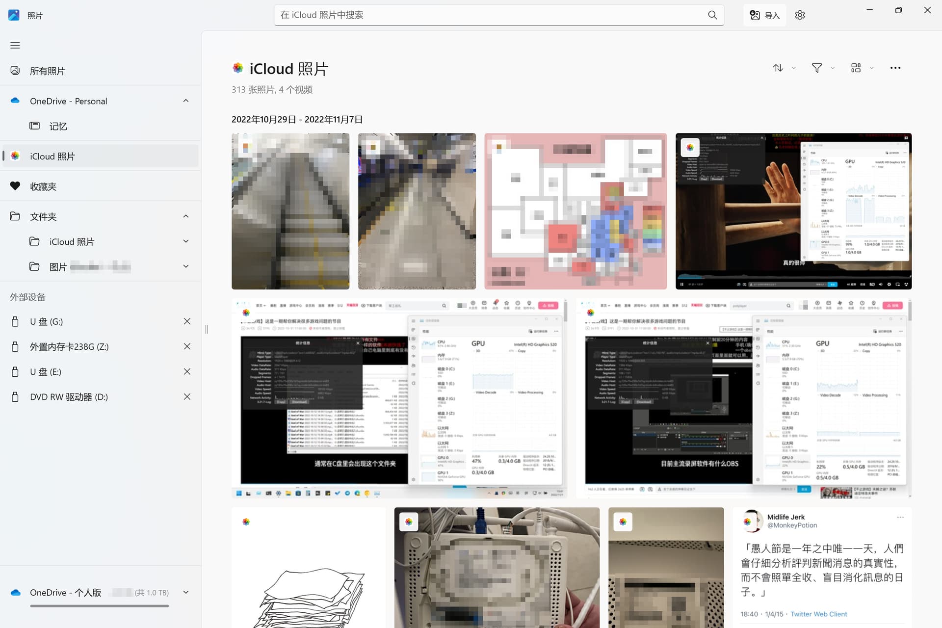 2、usb数据线连接手机与电脑:这种方式体验非常糟糕,照片都显示在某个月的文件夹内。点进去后,预览图加载时间很久、有的照片的预览图是旋转过的。如果想点开某个视频看一下,要先转存到电脑本地的临时目录后才打开 ,如果是一个20G的视频…