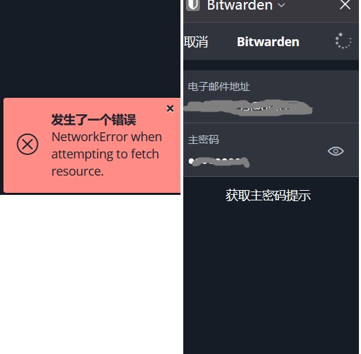 新安的浏览器,安装bitwarden插件。点击登录,出现如图现象。
