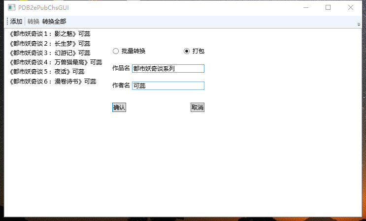 软件包括命令行版本和图形界面版本,支持批量转换,可以将多本书打包成一个合集,因为 好读 的书都是通过实体版校对的,各种分卷。