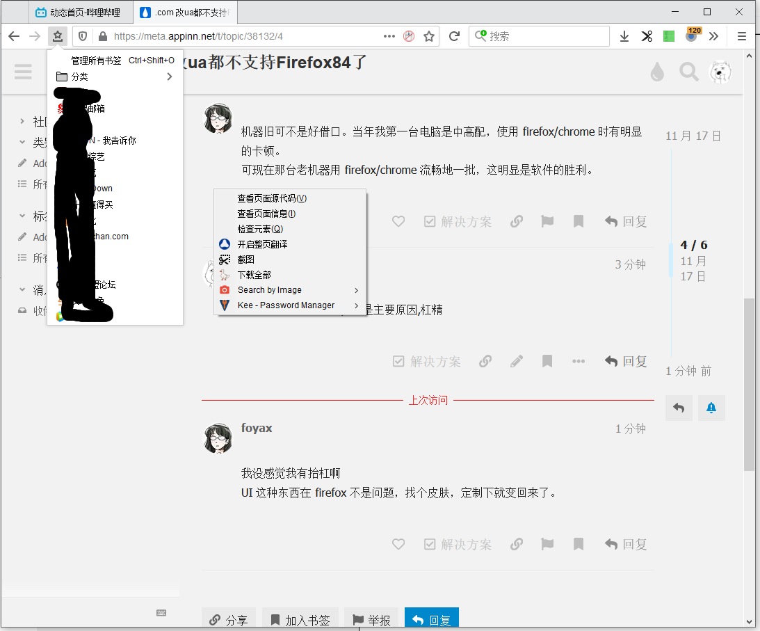 就像上面那个老哥说的, UI 在 Firefox 上真的不算是问题,他说让你找个皮肤定制下,你却说要手写userChrome.css。我寻思这种 UI 大改动,难道网上会没有现成的解决方案吗?谁是钢筋我不想评价。