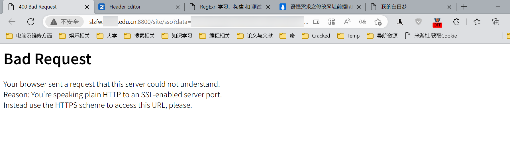需求如上,因为学校的校园网管理界面点开默认是http开头,但是显示为404,只有手动修改为https才能正常跳转…………