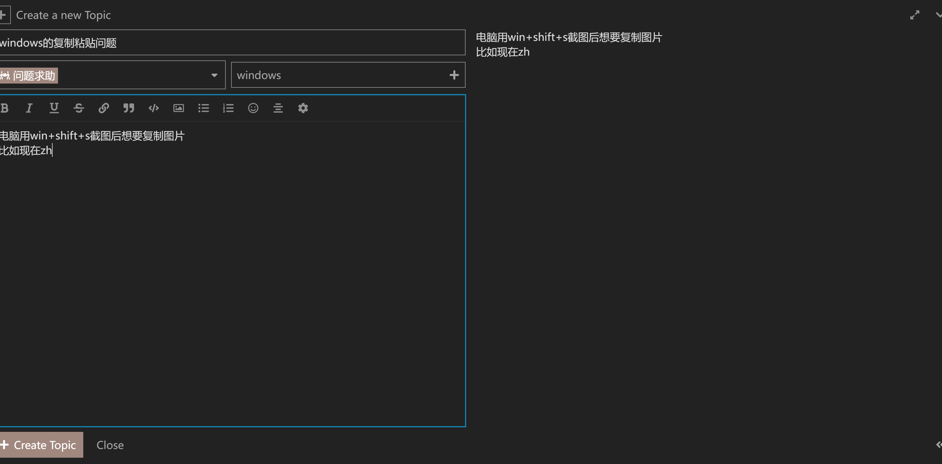 截图后在我的粘贴版上,但是我无法用ctrl+v把他粘贴出来我只能win+v然后选到我要发的图片在回车,可能我描述的不好,不知道怎么处理