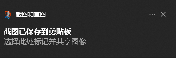 正常情况下, win+shift+s 截图后会有 已将截图复制到剪贴板 的提示
