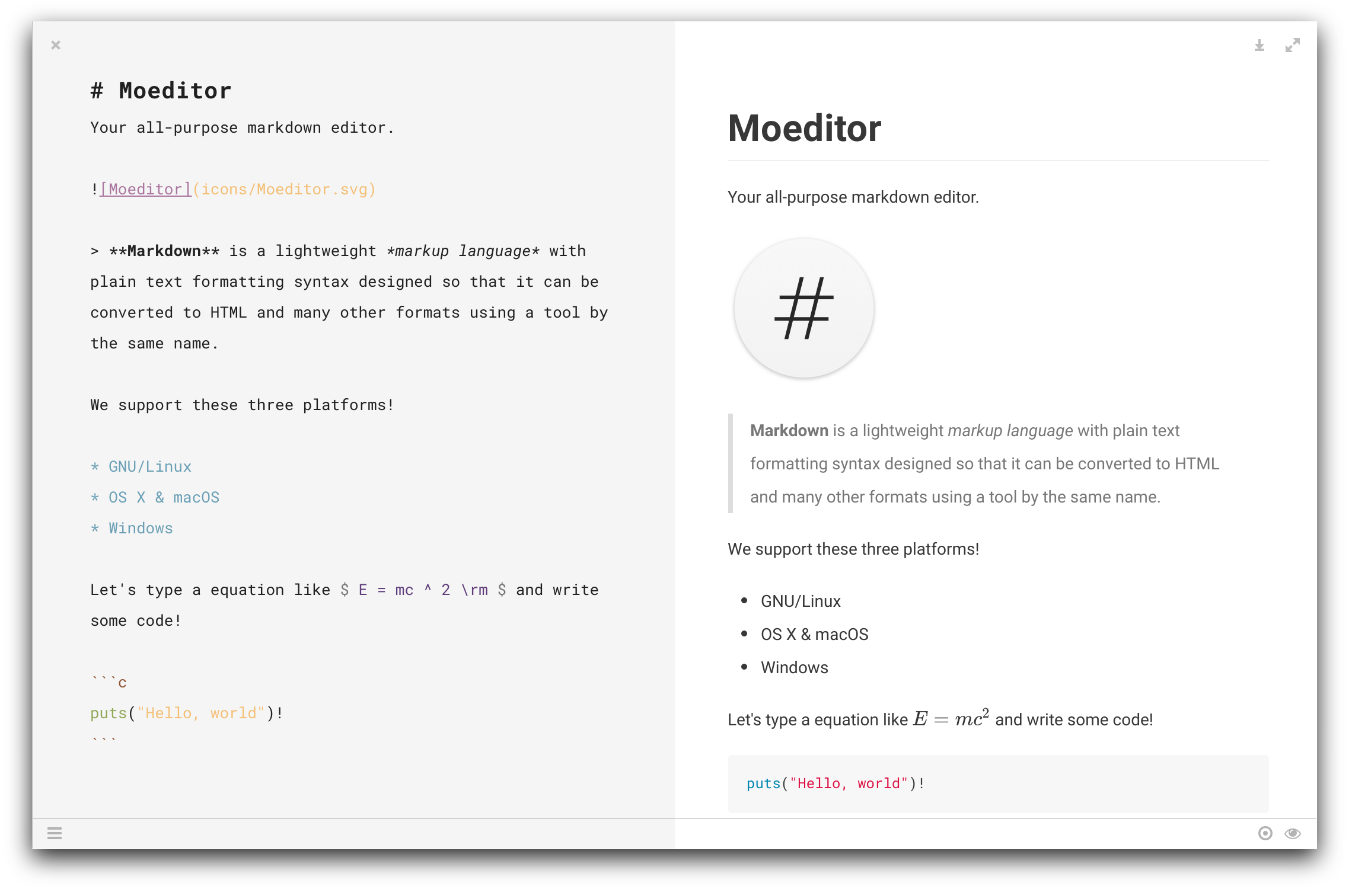 本来以前一直使用的typora,结果现在收费了。。不仅收费了,结果还连老版本都被强制不准使用了,另一个喜欢用的软件Markdownplus则是已经停更许久,各种小bug不断,导致我不得不找好用的markdown编辑软件,最终发现了这个: moeditor