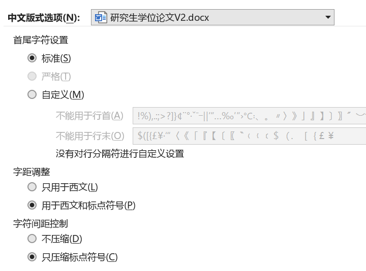 doc(学校模板)是不将空格填在行尾,自动往前面缩或往后面缩,自己建的文档,一个字符一个位置,有时候会遇到空格在末尾,2个word填的是一样的文字,一样的页面设置。