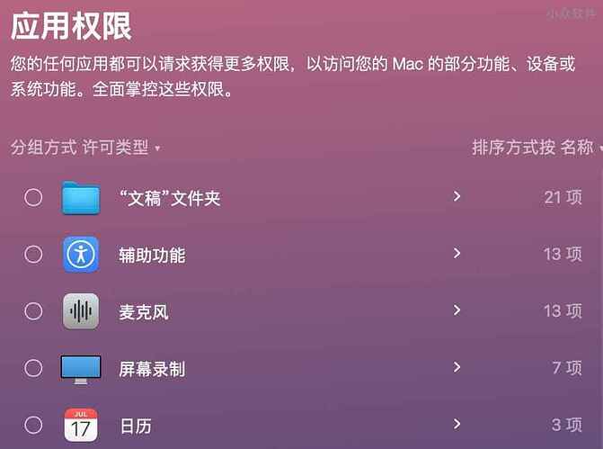 除了这些 Mac 上的数字足迹,还能管理系统权限,尤其完全磁盘访问权限、摄像头、输入监视、屏幕录制等几个权限,可以让用户一键移除不必要的授权,利用 macOS 自身,免去隐私泄漏的风险。