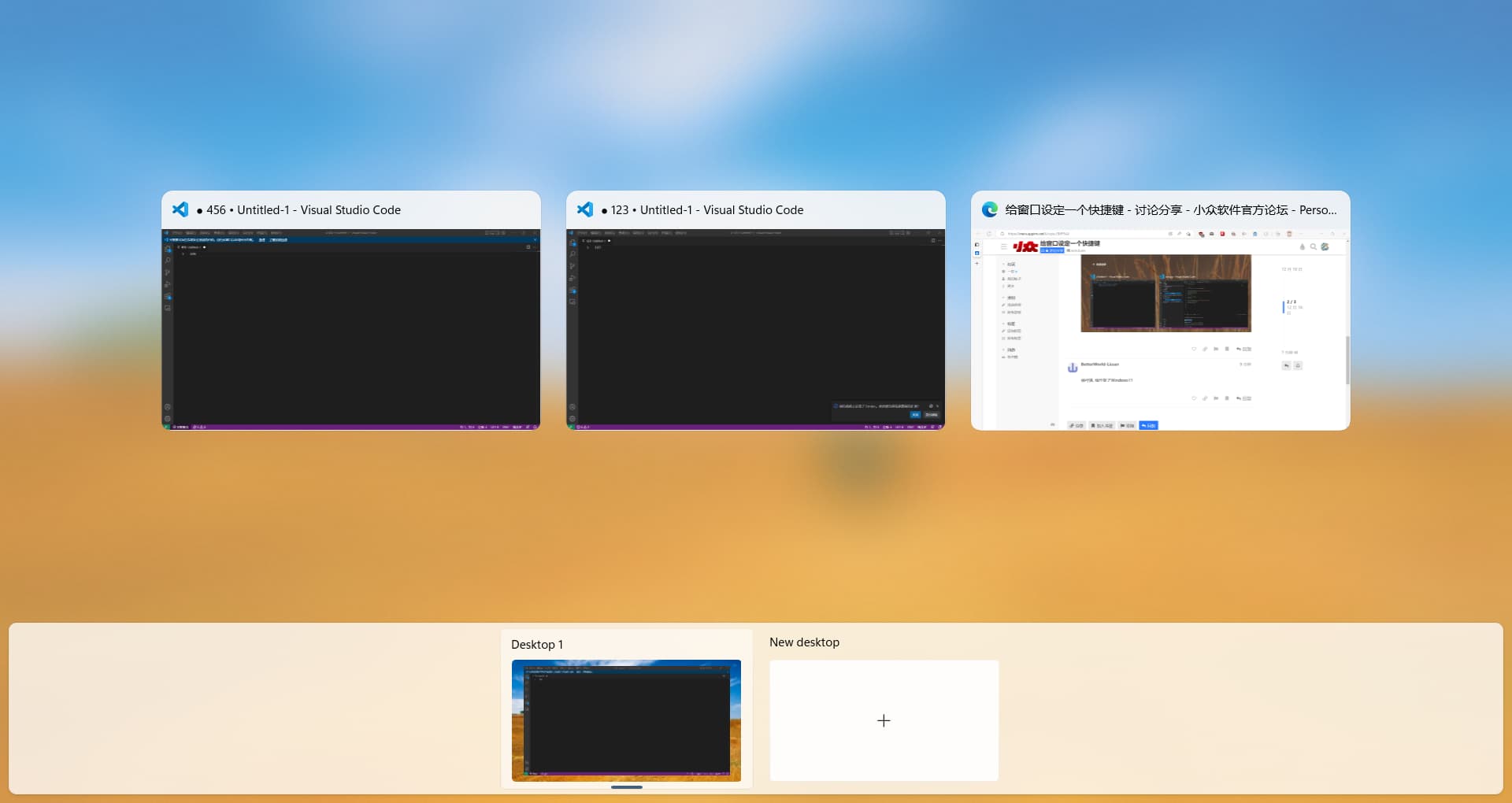 市面上切换窗口的应用都不太能让我满意, 因为我会开几个VSCode, 缩略图根本看不清哪个对哪个,标题也看不出来, 切换起来就很麻烦, 于是就在想窗口管理, 搜了半天没搜到让我满意的, 所以自己写了个方案, autohotkey是现学的, 所以可能有点问题, 但还是贴一下代码