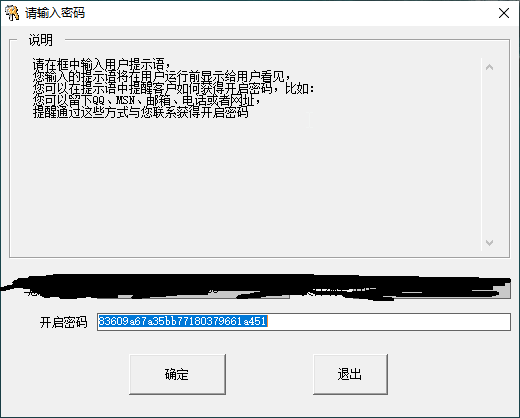 我现在就想要个只对.exe加密,在输入密码的界面有说明的软件如下图,不知道还没有这类软件推荐?