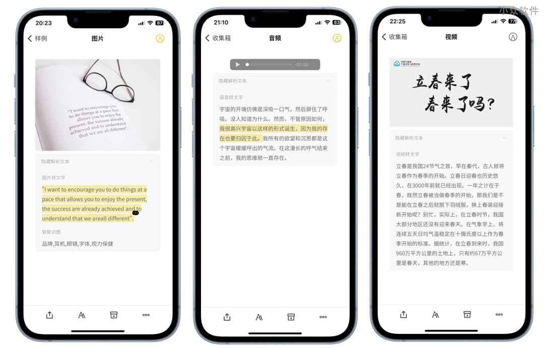 内置图片 OCR 技术,支持图片、微信音视频转文字,方便标记搜索,不遗漏每一项重要内容。