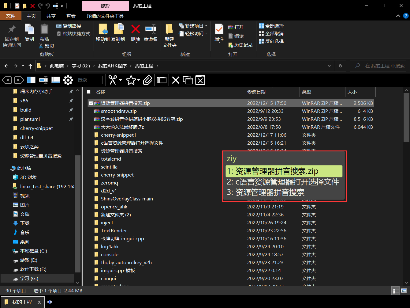 1、资源管理器 输入文件名的全拼、首字母、小鹤双拼字母。自动筛选和定位