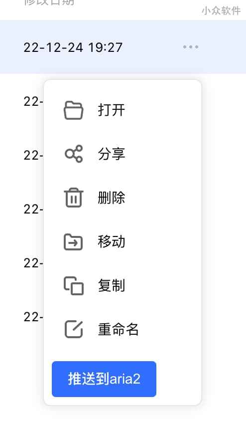 然后在需要下载的文件旁边,点击 … 呼出菜单,就能看到推送按钮了: