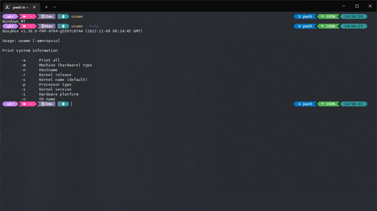 不过更推荐的安装方式是自己建个文件夹,把busybox.exe扔进去,然后在这个文件夹里执行./busybox --install -s(-s是创建NTFS软连接,不加的话是纯复制文件),就能体验到更原汁原味的busybox软连接执行方式了。最后将这个文件夹添加到环境变量中,就大功告成了。