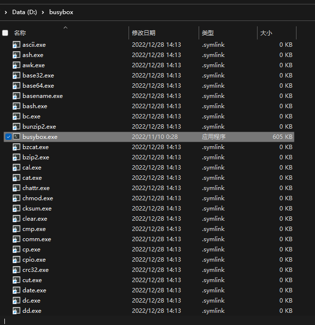 另外,busybox.exe是32位的,如果需要64位的可以下载busybox64.exe然后改名成busybox.exe。
