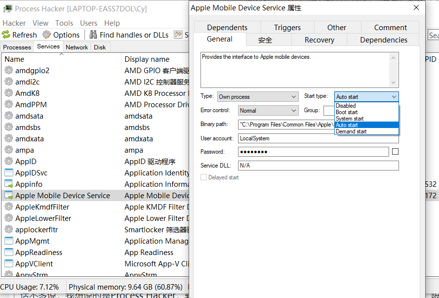 话不多说,我想说的是Process Hacker,软件不大,2M,可在任务栏用小图标显示CPU和内存占用,可搜索进程和服务,可右键一键关闭服务或前往exe路径,可在右键属性中设置服务各项参数甚至权限,可在系统被安装新服务时弹窗提醒。对进程也有很多操作,基本上在这方面你想到的功能它都有。没准可以尝试一下。(补充:无法设置仅显示非Microsoft服务,但是可以对驱动类型的服务进行处理)