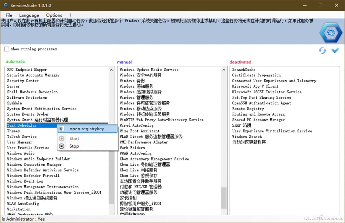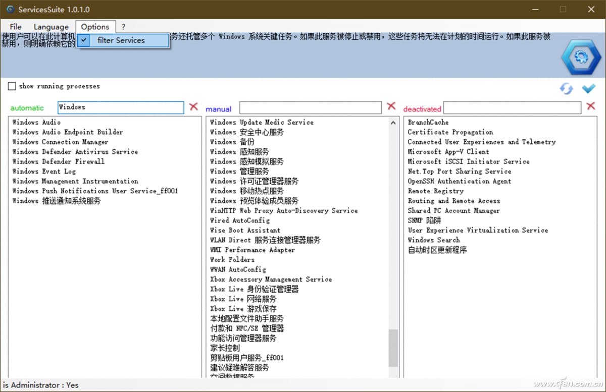 只是有些方面不是很理想,如排序和不能高亮显示已启动的服务等