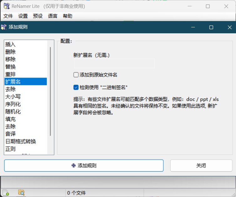 这个软件不清楚。如果是都没有后缀,还在一个文件夹,我会使用脚本批量重命名。find 命名 + mv 就可以了。看其他老师有没有方案