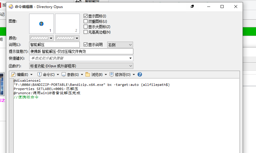“F:\000A\BANDIZIP-PORTABLE\Bandizip.x64.exe” bx -target:auto {allfilepath$}