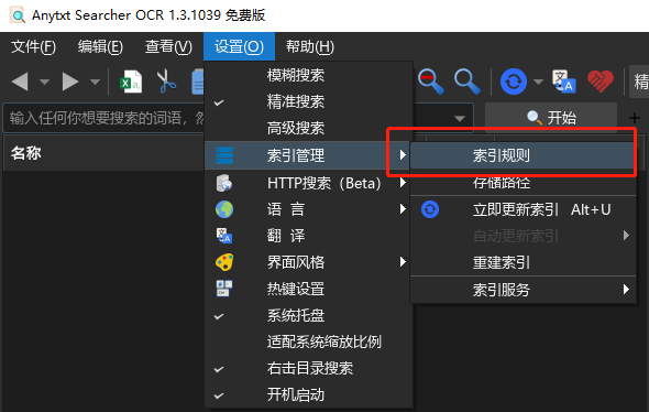 菜单 设置>索引管理>索引规则>添加 ,一般png和jpg格式就可以了